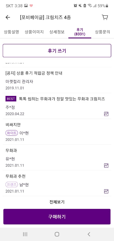 후기가 8331개인데, 다 무화과 먹으래잖아...ㅎㅎ